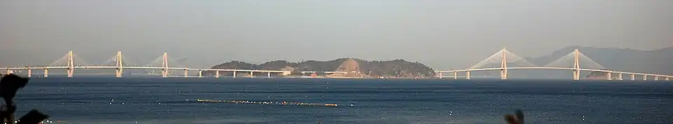Die Brücke hinter zwischen den Inseln Jungjuk und Jeo hat eine Länge von 1,87 Kilometern, ist leicht gebogen und liegt maximal 52 Meter über der Wasseroberfläche. Die Spannweite der Hauptpfeiler beträgt 475 Meter, die zwei Pylone erreichen eine Höhe von 158 Metern.[2]