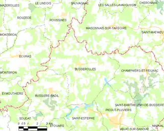 Busserolles ist die am weitesten nördlich gelegene Gemeinde im Département Dordogne und besitzt ein großes Areal von 32,46 Quadratkilometern.