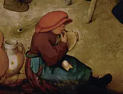 Der Volkskundler Günter Wiegelmann erwähnt in seinem Forschungswerk Alltags- und Festspeisen in Mitteleuropa: Innovationen, Strukturen und Regionen vom späten Mittelalter bis zum 20. Jahrhundert, dass Martin Luther bereits 1525 eine „Putterpomme“ (Butterbemme) als „gute Kindernahrung“ beschreibt.[1] (Nach anderer Quelle erwähnte Luther in einem Brief die „Butterpomme“ als „beliebte Kindernahrung“.[2]) Der Maler Pieter Bruegel zeigt auf seinem 1568 entstandenen Gemälde Die Bauernhochzeit das erste „Butterbrot-Bild“, ein Kind mit einem angebissenen Butterbrot im Schoß liegend.[2]