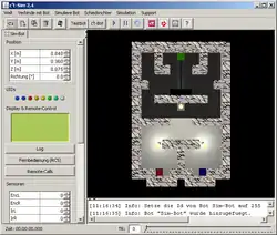 Selbst ein ganzer, von der c’t initiierter Wettbewerb wurde mittels des c’t-Sims ausgetragen, wobei es darum ging, im Wettstreit mit einem zweiten Bot möglichst schnell einen Weg durch ein zufällig generiertes Labyrinth zu finden und dabei nicht in eines der zahlreichen Löcher auf dem Spielfeld zu fallen. Die besten drei Programmierer wurden mit speziell lackierten (realen) c’t-Bots ausgezeichnet.