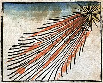- ↑ J. J. Wagner: Herrn Ludwig Lavaters / L.G. Hiſtoriſche Erzehlung vaſt aller der Kometen / Welche von der Geburt des Röm: Keiſers Auguſti / und der Gnadenreichen Geburt unſers Herren und Heilands Jeſu Chriſti an / bis auf das 1556. Jahr geſehen worden; auß vilerley Geſchichtſchreibern zuſammen getragen. Zürich 1681, S. 58–62, doi:10.3931/e-rara-324 (PDF; 26,85 MB).