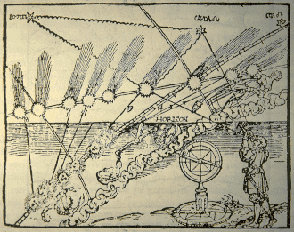 | Der Komet von 1532 in einem Holzschnitt von Peter Apian | |