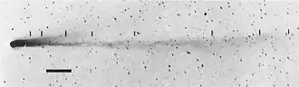 | Negativbild des Kometen vom 23. März 1974 (Balkenlänge entspricht 1 Mio. km) | |