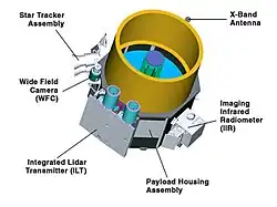 - CALIOP stellt mithilfe eines Lasers hochaufgelöste, vertikale Profile von Wolken her. Dabei wird mit mehreren Wellenlängen und einem Empfängerteleskop mit einem Meter Durchmesser gearbeitet.