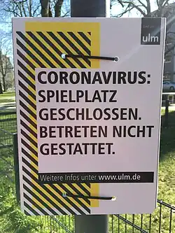 - ↑ Verordnung des Sozialministeriums zur Untersagung des Verlassens bestimmter Einrichtungen zum Schutz besonders gefährdeter Personen vor Infektionen mit Sars-CoV-2. (PDF) In: sozialministerium.baden-württemberg.de. Ministerium für Soziales und Integration Baden-Württemberg, 7. April 2020, abgerufen am 8. April 2020.