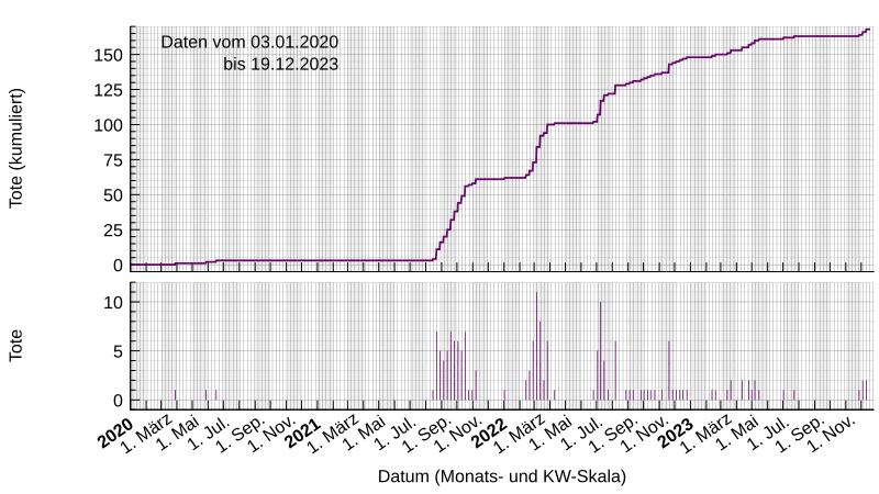 - ↑ a b WHO Coronavirus Disease (COVID-19) Dashboard; oben rechts auf der Seite ist ein Link zum Download der Daten im CSV-Format