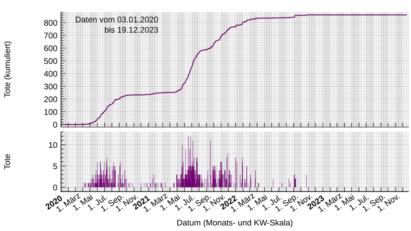 - ↑ a b WHO Coronavirus Disease (COVID-19) Dashboard; oben rechts auf der Seite ist ein Link zum Download der Daten im CSV-Format