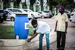 Mit Ausbruch der Pandemie im Lande im März 2021 wurden Ausgangssperren und Reiseverbote im Land verhängt. Die Polizei zeigte Präsenz auf den Straßen. Vom 8. bis zum 30. März nahm die Polizei mehr als 400 Personen wegen Verstößen gegen die Lockdown-Regeln fest. Sie wurden nach Feststellung der Personalien und einer Belehrung über die Maßnahmen wieder freigelassen. Polizei und Hilfsorganisationen verteilten kostenlos Schutzmasken. Da eine 25 US-Cent kostet, kann sich nicht jeder Osttimorese eine leisten. Lokale Unternehmen stellten Alkohol und Desinfektionsgel her, um sie an Schulen, Kirchen und andere Einrichtungen zu verteilen.[131][132] Asymptomatische oder Menschen mit leichten Symptomen wurden nun im Hotel Novo Horizonte, in Tasitolu und in Tibar untergebracht. Moderate Fälle kamen in das Isolationszentrum von Vera Cruz.[80]
