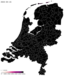 Am 19. November 2021 betrug die Sieben-Tage-Inzidenz 734.[11] Deutschland stufte an diesem Tag die Niederlande als Hochrisikogebiet ein.[12] Vom 19. Dezember 2021 bis mindestens zum 14. Januar 2022 gibt es einen landesweiten Lockdown.[13]