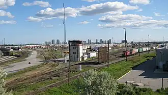 CPR Toronto Yard (CPR, oben rechts)Die Verbindungen der CPR und der späteren Canadian National Railway (CN) von Detroit nach Montreal verliefen im 19. Jahrhundert über das auf etwa halber Strecke gelegene Toronto. Ab Ende des Jahrhunderts entstanden entlang der Strecken auf dem Gebiet des heutigen Stadtzentrums von Toronto mit dem West Toronto Yard (1890, CPR) und dem Mimico Yard (1906, Grand Trunk Railway, später CN) erste große Rangierbahnhöfe mit Ringlokschuppen zur Wartung der Dampflokomotiven. Die CPR erweiterte in den 1910er Jahren ihre Kapazität mit dem Bau des Lambton Yard, der fortan zusammen mit dem benachbarten West Toronto Yard als ein großer Rangierbahnhof betrieben wurde.[1] Die stetige Zunahme des Güterverkehrs während des Zweiten Weltkrieges in den 1940er Jahren und die beschränkte verfügbare Fläche in der ebenfalls wachsenden Metropole, zwang die beiden großen Eisenbahngesellschaften dazu, über Alternativen nachzudenken, was Anfang der 1960er Jahre im Neubau von Rangierbahnhöfen am Rande der Greater Toronto Area mündete. Die CPR wählte als Standort das nordöstlich gelegene Agincourt im heutigen Stadtbezirk Scarborough und errichtete hier bis 1964 auf etwa 175 Hektar einen Flachbahnhof mit 63 Richtungsgleisen, deren Anzahl in den 1990er Jahren auf 72 erhöht wurde. Der Lambton-West Toronto Yard blieb nach der Eröffnung des CPR Toronto Yard weiterhin in Betrieb und wird von der CPR heute für die Versorgung der lokalen Industrie genutzt, die großen Ringlockschuppen wurden allerdings abgerissen.[2]