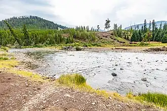 | Quelle | an der Südostflanke des Amphitheater Mountain in der nördlichen Absaroka Range 44° 57′ 58″ N, 109° 58′ 59″ W | |