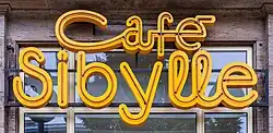 Der gelbe Neonschriftzug „Café Sibylle“ über der Eingangstür wurde, ebenso wie der Schriftzug der Karl-Marx-Buchhandlung einige Häuser weiter, unter Denkmalschutz gestellt, um dem Verschwinden der in der DDR weit verbreiteten Leuchtreklamen entgegenzuwirken.[11]
