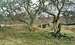 Das Material des Cairns, der einst einen Durchmesser von etwa 20 m hatte und zwischen Birken auf flachen Grund liegt, ist nahezu abgetragen. Auch der Gang ist nicht mehr vorhanden. Allerdings existiert das meiste des großformatigen Steinmaterials der beiden Kammern. Die Wände der polygonalen inneren Kammer bestehen aus fünf aufrechten Platten von etwa 1,8 m Höhe, mit breiten Lücken des einstigen Trockenmauerwerks dazwischen. Portalsteine markieren den Übergang zur äußeren Kammer, die nur zur Hälfte erhalten ist.