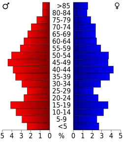 Auf das gesamte County bezogen setzte sich die Bevölkerung zusammen aus 22,4 Prozent Einwohnern unter 18 Jahren, 8,0 Prozent zwischen 18 und 24 Jahren, 25,9 Prozent zwischen 25 und 44 Jahren, 27,1 Prozent zwischen 45 und 64 Jahren und 16,7 Prozent waren 65 Jahre alt oder darüber. Das Durchschnittsalter betrug 41 Jahre. Auf 100 weibliche Personen kamen 99,7 männliche Personen. Auf 100 Frauen im Alter von 18 Jahren oder darüber kamen statistisch 98,3 Männer.