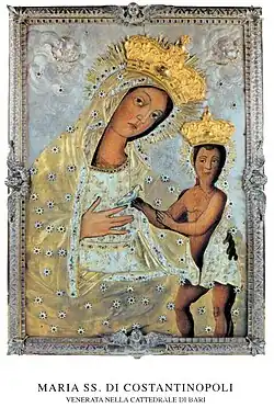 - ↑ a b c d Michele Scaringella: La Madonna Odigitria o Maria Santissima di Costantinopoli e San Nicola venerati a Bari. (PDF) S. 6, abgerufen am 25. Juli 2017 (italienisch).