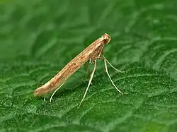 - ↑ Caloptilia elongella. www.hantsmoths.org.uk, abgerufen am 7. August 2018 (englisch).