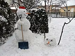 - Calvin baut gerne Schneemänner und Schneeskulpturen und stellt mit ihnen makabre, schwarzhumorige Szenen dar – etwa Enthauptungen oder kannibalische Vorgänge. Calvins Eltern sind diese Skulpturen in ihrem Garten peinlich, da ihre Nachbarn dadurch einen Einblick in die Psyche ihres Sohnes und die scheinbar misslungene Erziehung erhalten. Calvin benutzt die Schneeskulpturen auch, um die Eltern-Kind-Beziehung sarkastisch zu kritisieren, indem er z. B. Schneemänner baut, die mit Transparenten gegen das Zimmeraufräumen demonstrieren.