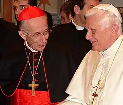 Weil er die zulässige Altersgrenze für die Papstwahl überschritten hatte[7], nahm er nicht am Konklave 2013, jedoch an den Generalkongregationen des Kardinalskollegiums während der durch den Rücktritt Benedikts XVI. eingetretenen Sedisvakanz teil.