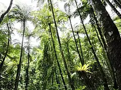 Das Innere der Insel Groß Nikobar ist dicht bewaldet. Etwa 11 Prozent der Gefäßpflanzen sind endemisch und rund 30 Arten gelten als gefährdet.[9] Dominierende Pflanzenarten in den immergrünen Wäldern der Insel sind wie auch auf Camorta und Katchal das Sapotengewächs Planchonella longipetiolata, Calophyllum soulattri, Garcinia xanthochymus, Pisonia excelsa und die Mangoart Mangifera sylvatica. Laubwälder in den niedrigeren Lagen der Insel umfassen beispielsweise die Myrobalanenarten Terminalia bialata und T. procera.[2] Zu den auf den Nikobaren endemischen Arten zählen der Baumfarn Cyathea albo-setacea und die Orchidee Phalaenopsis speciosa.[9]