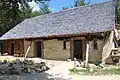 | Nebengebäude des Abtshauses | seit 2021 | Stein- und Holzbau | in Bau | Das Nebengebäude umfasst eine Küche, einen Vorratsraum und eine Badstube sowie drei Schlafräume der Bediensteten des späteren Abtshauses.[12] Das Gebäude hat eine Länge von 16,80 m, eine Breite von 7 m und eine Gesamthöhe von 7 m. Während Küche und Vorratsraum aus Kalkbruchsteinen gemauert werden, besteht die Badstube aus Holzbohlen. Die Schlafräume auf der Rückseite des Gebäudes sind als Holzfachwerk mit Lehmflechtwerkausfachungen ausgeführt. Das Dach ist mit Holzschindeln gedeckt. | ![]()