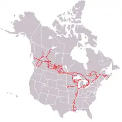 Das Streckennetz reicht von Halifax (Nova Scotia) an der Atlantikküste über Montreal, Toronto, Winnipeg, Edmonton bis nach Vancouver und Prince Rupert an der Pazifikküste. Südlich erstreckt es sich in den Vereinigten Staaten über Buffalo, Detroit, Chicago und St. Louis bis New Orleans und Mobile am Golf von Mexiko sowie bis Sioux City und Omaha an der Grenze der Bundesstaaten Iowa und Nebraska.