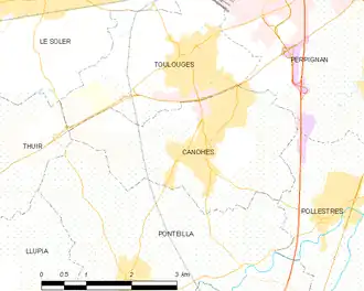Durch die Gemeinde führt der Canal de Perpignan. Umgeben wird Canohès von den Nachbargemeinden Toulouges im Norden, Perpignan im Nordosten, Pollestres im Osten, Pontella im Süden und Thuir im Westen.