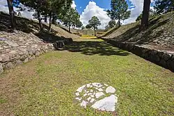 In Cantona wurden 24 Ballspielplätze festgestellt, von denen 12 als architektonische Gruppe mit einer Pyramide an einem Ende und ein oder zwei abgeschlossenen Höfen gestaltet waren. Einmalig sind die Ballspielmarker aus Steinmosaik. Die Monumentalarchitektur wies eine Deckschicht aus gut bearbeitetem vulkanischem Gestein auf.