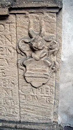 Der erste Capler, der den zusätzlichen Beinamen genannt Bautz trug, war Ulrich Capler von Oedheim, genannt Bautz (ca. 1360–1437). Der oberdeutsche Übername Bautz hat sich aus dem mittelhochdeutschen Wort buz (Schlag, Stoß) entwickelt.[2] Die Capler hatten zunächst die Burg in Oedheim und den Hof Willenbach als weinsbergisches, später als pfälzisches und ab 1504 als württembergisches Lehen, während der Ort Oedheim 1484 an den Deutschen Orden kam, was, insbesondere nachdem die Capler um 1700 evangelisch wurden, zu wiederholten Streitigkeiten führte.