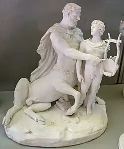 Ab den 1790er Jahren gab es auch eine große Produktion von Figuren in unglasierten Biskuitporzellan, das Marmor ähnelt. Viele waren lose Kopien von berühmten antiken Statuen, insbesondere aus der reichen königlichen Sammlung, einschließlich Porträtbüsten. Der Manufaktur war es erlaubt, diese auszuleihen, um sie zu kopieren. Eine Wandmalerei mit einer Szene, in der der Zentaur Chiron Achilles das Spiel der Lyra beibringt, wurde in den 1750er aus einem Haus in Herculaneum entfernt, wurde berühmt. Sie wurde zweimal reproduziert: einmal auf einem bemalten Tasse und als eine Biskuitfigurengruppe von der Manufaktur (das römische Wandbild aus dem 1. Jahrhundert war eigentlich eine Interpretation einer Skulptur in Rom).[41]