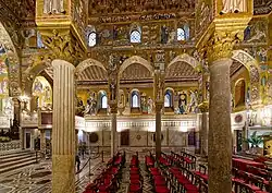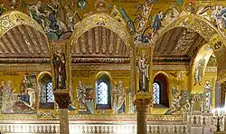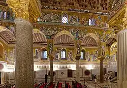 Die Cappella Palatina („Palastkapelle“) wurde 1132 bis 1140 n. Chr. unter König Roger II. im normannisch-arabisch-byzantinischen Stil als Hofkapelle des Palazzo dei Normanni von Palermo errichtet. Die Weihe fand 1140 statt, das Mosaik in der Kuppel ist 1143 datiert. Vollständig fertiggestellt war die Ausgestaltung beim Tod Rogers II. 1154 noch nicht. Die Cappella Palatina ist Teil des UNESCO-Weltkulturerbes Arabisch-normannisches Palermo und die Kathedralen von Cefalù und Monreale.[1]