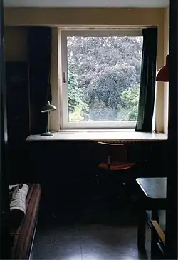 So lagen dann zu Beginn der 1950er-Jahre bei der Diskussion um den Bau von Wohnheimen den pädagogisch-politischen Konzepten vier Aspekte zugrunde: „ein Interesse an der Verbreiterung der Allgemeinbildung, an der Fundierung einer staatsbürgerlichen Bildung, an der Einübung in demokratisches Handeln und an der Formung neuen Gemeinschaftslebens“.[4] Mit Blick auf die britische und US-amerikanische Tradition der Colleges begann man im westlichen Nachkriegsdeutschland mit der Errichtung von Kollegienhäusern, in denen Professoren und Studenten nicht nur gemeinsam wohnen, sondern sich auch gemeinsam akademischer Bildung widmen sollten. Zu den ersten Versuchen dieser Art gehörten 1945 das Collegium Academicum an der Universität Heidelberg und 1949 das Collegium Gentium an der Universität Marburg.[7] Auch der Verband Deutscher Studentenschaften (VDS) als Vertretung der primär Betroffenen stand bis Ende der 1950er-Jahre der Form eines sogenannten „Wohnheims mit Konzeption“ (also begleitenden Allgemeinbildungsprogramms) offen gegenüber und lehnte noch auf dem 5. Deutschen Studententag in Karlsruhe 1958 die lediglich aufs reine Wohnen ausgerichteten Heime vom Typ eines „Studentenhotels“ als zu anonym ab[4] – erst Anfang der 1960er-Jahre kippte im VDS die Stimmung hin zum „Studentenhotel“ und der damit einhergehenden völligen individuellen Freiheit, aber auch Loslösung aus Gemeinschaften.