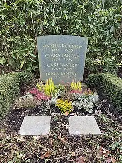 Carl Jantke verstarb 79-jährig und wurde auf dem Friedhof Ohlsdorf nördlich von Kapelle 4 beigesetzt.