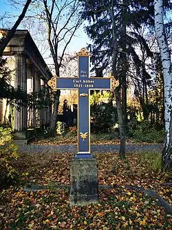 Carl Kühne übernahm 1867 das Unternehmen und wurde 1876 von Kaiser Wilhelm I. zum Hoflieferanten ernannt.[4] Sein Grab und das seiner 1921 verstorbenen Ehefrau Elise befinden sich auf dem Friedhof Georgen-Parochial I in Berlin-Prenzlauer Berg. Kühnes Grab wurde in der Nachwendezeit restauriert.[5]