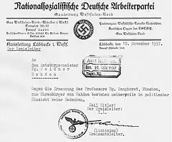 Schreiben des NSDAP-Mitglieds und Hauptschriftleiters Rudolf Friedemann -