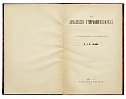 Bereits 1874 hatte der 26-jährige Wernicke eine Arbeit veröffentlicht, in der er seine Entdeckung des sensorischen Sprachzentrums sowie dessen Störung, die (kortikale) sensorische Aphasie, welche später nach Wernicke benannt wurde, mitteilte. Diese Arbeit, „eine psychologische Studie auf anatomischer Basis“, stellt sich als eines der großen Ereignisse in der Geschichte der Medizin dar, sowohl dank den in ihr enthaltenen Beobachtungen, als auch auf Kraft der Wirkungen, die von ihr ausgegangen sind. Sie fußte auf den Anschauungen Theodor Meynerts über Bau, Tätigkeit und Leitungssysteme des Gehirns, die sich in Projektionssysteme und Assoziationssysteme scheiden. Auf diese Weise erklärte Wernicke die motorische Aphasie (Broca, Läsion der 3. Stirnwindung), die sensorische Aphasie (von ihm nachgewiesene Läsion der 1. Schläfenwindung) und nahm eine Leitungsaphasie durch Zerstörung des verknüpfenden Assoziationssystems an.