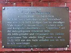 Gedenktafel für Ossietzky in der Kantstr. 152, Berlin