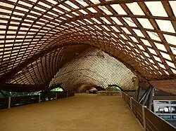 - ↑ Manfred Sack: Das Wunder von Mannheim. Für die Bundesgartenschau konstruiert: das komplizierteste einfache Dach der Welt. ( vom 6. Juni 2013 im Internet Archive). In: Die Zeit, 16. Mai 1975, Nr. 21, Artikelanfang.