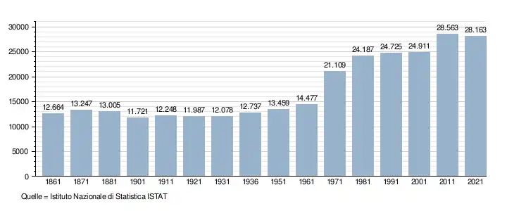 - ↑ Bilancio demografico e popolazione residente per sesso al 31 dicembre 2024. ISTAT. (Bevölkerungsstatistiken des Istituto Nazionale di Statistica, Stand 31. Dezember 2024).