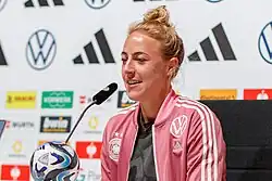 - ↑ WM-Kader der DFB-Frauen: Simon fehlt verletzt - Minge Backup. In: zdf.de. 8. Juli 2023, abgerufen am 9. Juli 2023.