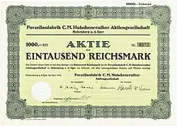 - ↑ Porzellanfabrik C. M. Hutschenreuther. In: Handbuch der deutschen Aktiengesellschaften, 48. Ausgabe 1943, Band 3, S. 2907–2910.
