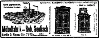 Seelisch begann mit der Produktion von Stuhlsitzen und beschäftigte zehn Tischler im Jahre 1876. Die Produktpalette wurde dann erweitert um Gardinenstangen, Handtuchhalter, Quirlbretter und andere Haushaltsgegenstände. Schließlich wurden Küchenmöbel hergestellt und später ganze Wohnungseinrichtungen. Die Möbelfabrik Robert Seelisch wurde einer der bedeutenden Möbelhersteller in Berlin und hatte nun 100 Beschäftigte.[1]
