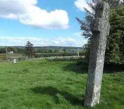 Der Zugang zur Einschließung wird durch zwei etwa 1,5 m voneinander entfernte Steinpfosten definiert. Die Einschließung wird nahe dem Nordende von einem Wall unterteilt. In der Nähe der Abteilung liegt ein flacher Felsblock mit einer rechteckigen Eintiefung, vielleicht die Basis für ein weiteres Kreuz und eine Platte mit zwei Querrinnen. In der Nähe der Straße befindet sich eine Platte mit einer Ritzung, die wie ein Schwert neben einem Kreis aussieht.