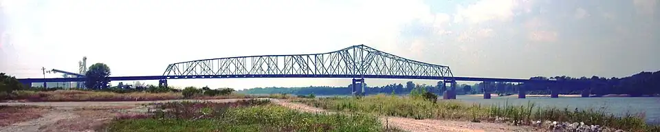 Zentrales Element der Hauptbrücke ist ein 439 Meter langer Stahl-Fachwerkträger, der als unsymmetrischer Gerberträger ausgeführt ist. Er bildet Spannweiten von 280 Meter über der Schifffahrtsrinne auf der Tennessee-Seite im Süden und von 159 Meter in Richtung Missouri-Seite im Norden. Auf den Fachwerkträger folgen beidseitig jeweils fünf Balkenbrücken aus Stahl-Vollwandträgern von 4 × 72 m und 1 × 40 m; daran schließen sich eine Vielzahl von weiteren Stahlbeton-Balkenbrücken von je 27 Meter Länge an. Die Brücke ruht auf insgesamt 58 Stahlbetonpfeilern und erstreckt sich über eine Gesamtlänge von 2165 Meter.[2][3]