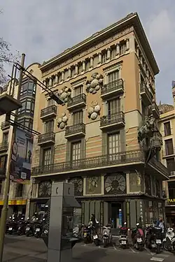 Besonders auffällig ist der schmiedeeiserne chinesische Drache, der an einer Ecke des Hauses angebracht ist und eine Laterne, einen Schirm und einen Fächer trägt. Die Fassade wurde 1980 restauriert und gilt als eine der Sehenswürdigkeiten der Rambla.[1][2]