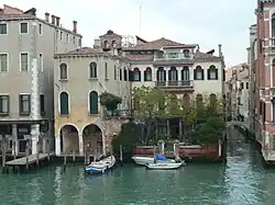 Der dreistöckige Palast in L-Form liegt an der Einmündung des Rio San Felice in den Canal Grande. Vor dem Palast, zum Canal Grande und zum Rio San Felice hin, liegt ein kleiner Garten.
