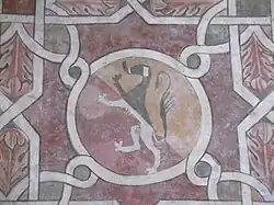 - ↑ Das Fragment eines Freskos mit dem heraldischen Zeichen des Adlers findet sich im Gebäudeteil aus dem 14. Jahrhundert der Residenz der D’Estes, die heute Sitz der Stadtverwaltung von Ferrara ist.
