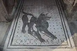 - ↑ Leonard von Matt, Theodor Kraus: Lebendiges Pompeji. Pompeji und Herculaneum: Antlitz und Schicksal zweier antiker Städte. DuMont, Köln 1978, ISBN 3-7701-1060-9, S. 50; Simon, In: Giuseppina Cerulli Irelli, Masonaori Aoyagi, Stefano De Caro, Umberto Pappalardo (Hrsg.): Pompejanische Wandmalerei. S. 244.