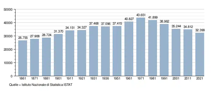 - ↑ Bilancio demografico e popolazione residente per sesso al 31 dicembre 2024. ISTAT. (Bevölkerungsstatistiken des Istituto Nazionale di Statistica, Stand 31. Dezember 2024).