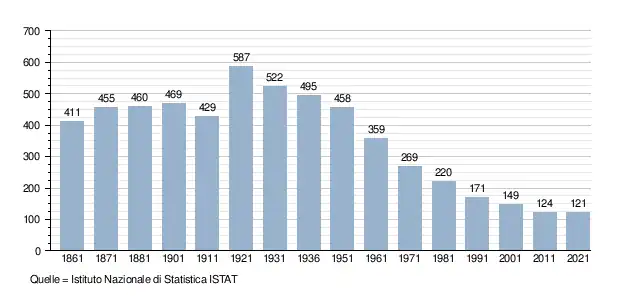- ↑ Bilancio demografico e popolazione residente per sesso al 31 dicembre 2024. ISTAT. (Bevölkerungsstatistiken des Istituto Nazionale di Statistica, Stand 31. Dezember 2024).