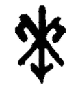 Huxers Münzmeisterzeichen zeigt zwei gekreuzte Zainhaken mit einem nach unten durchgesteckten Pfeil.